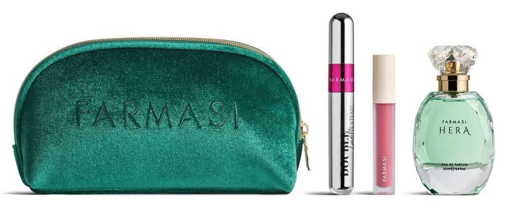 Chargement… Code produit : Achetez sur le site Farmasi Contenu de l’ensemble: Sublimez votre look quotidien avec le coffret Hera Glam, une collection soignée qui allie élégance intemporelle et beauté moderne.Il comprend l’emblématique Hera Eau de Parfum pour un parfum sophistiqué, le Double Lash Extend Mascara pour des cils audacieuxContinuez la lecture